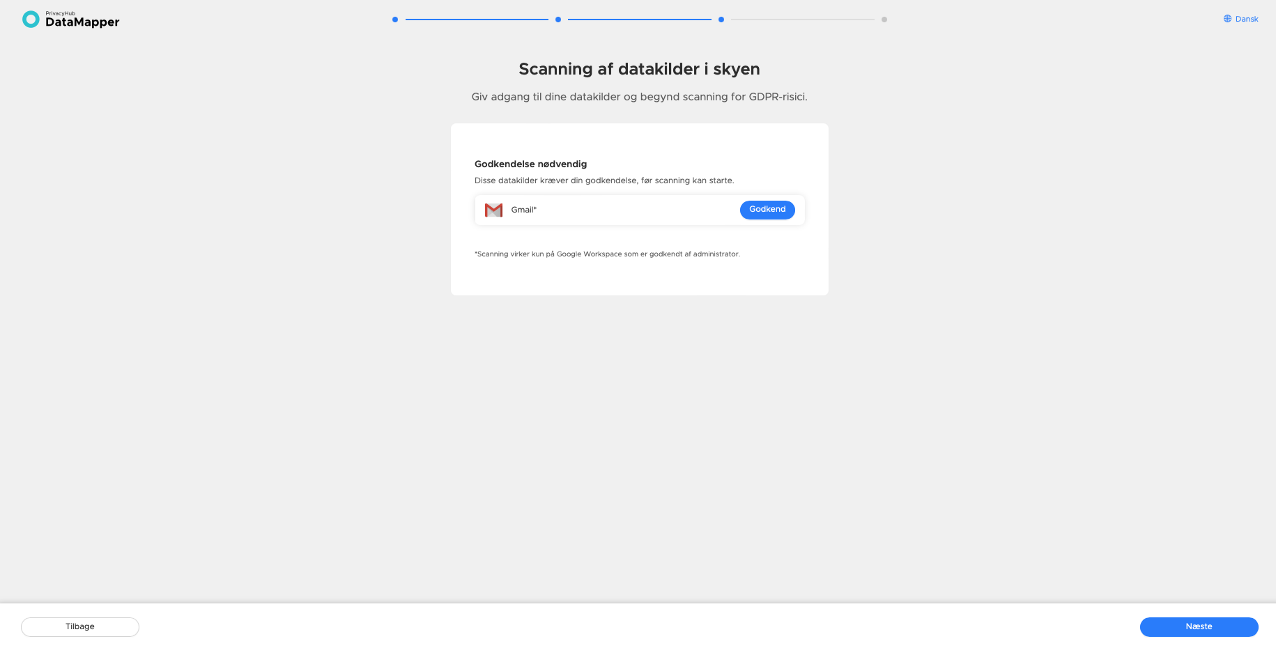 Når du har klikket på "Næste" efter at have foretaget et valg ovenfor vil du blive præsenteret for de datakilder, du har mulighed for at scanne såfremt det ikke allerede er valgt af din administrator. Du kan springe dette "Godkend" trin over og gå direkte videre til Datakilder og gøre det derfra.