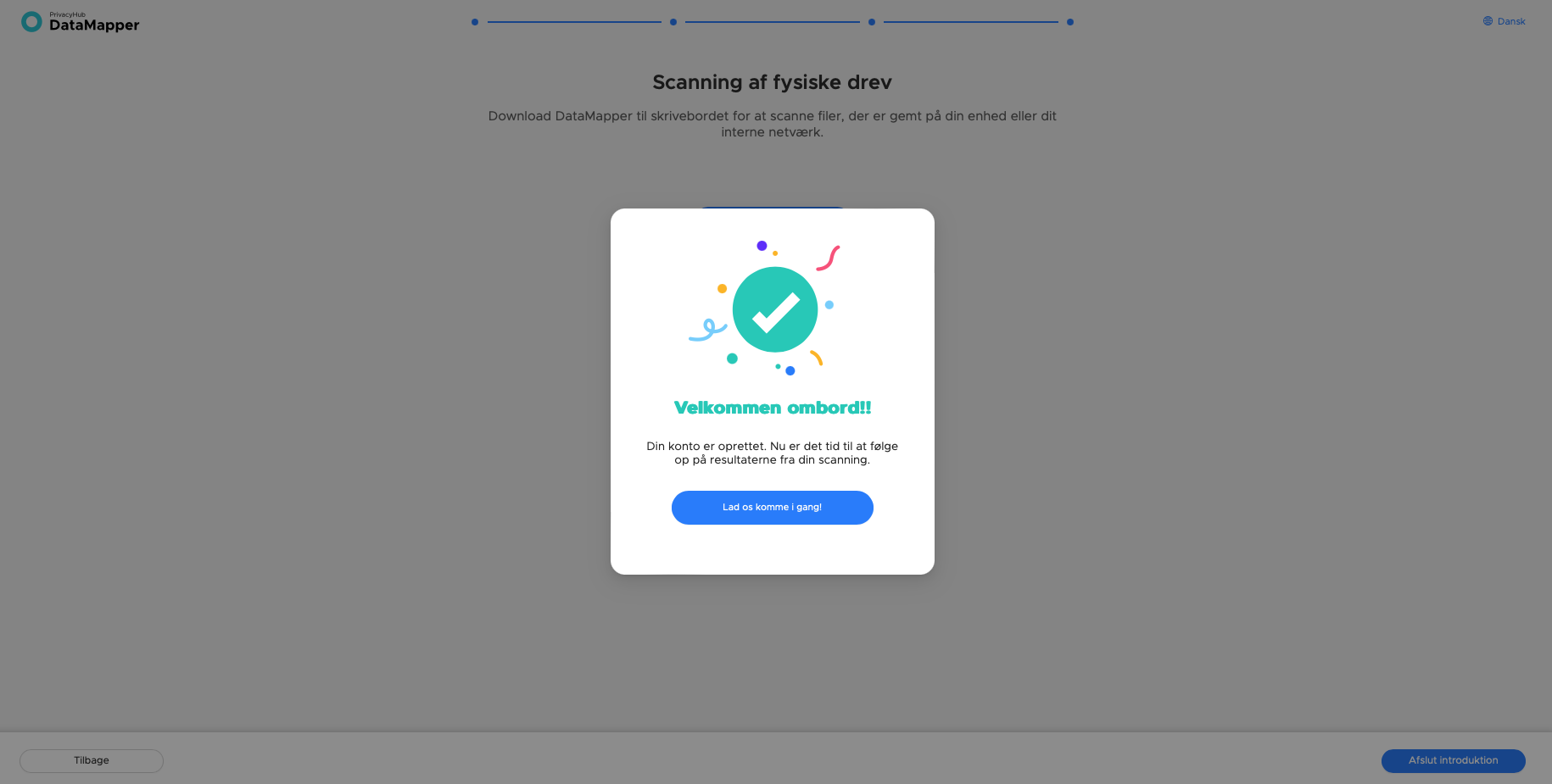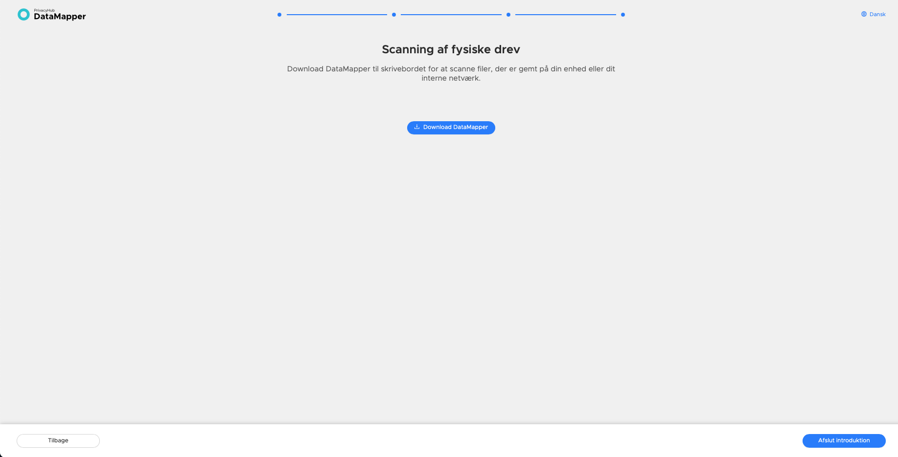 Sidste trin er eventuelt opsætning af scanning af fysiske drev. Dette kan du også springe over, såfremt det ikke er aftalt med din administrator. Klik da Afslut introduktion.