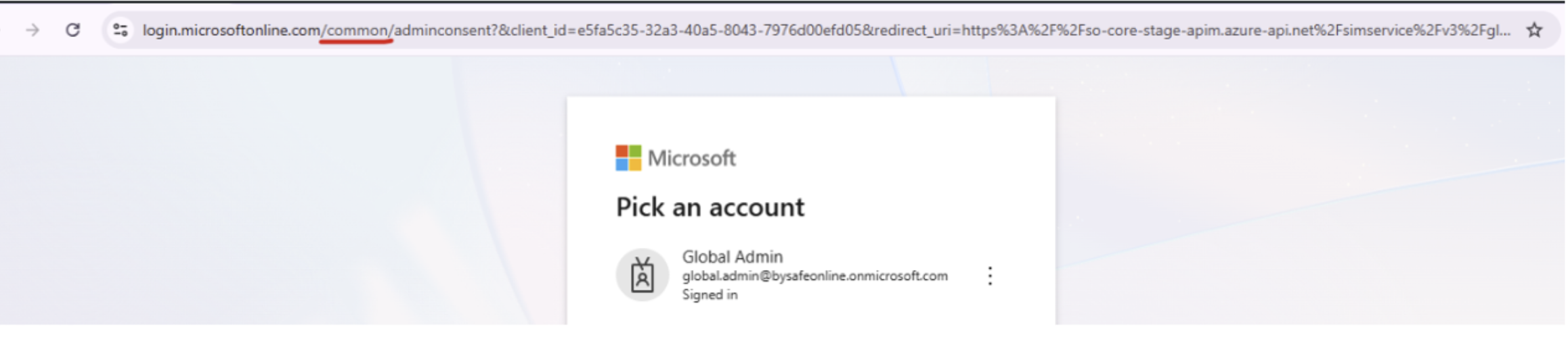- Global Admin updates the URL with tenant ID